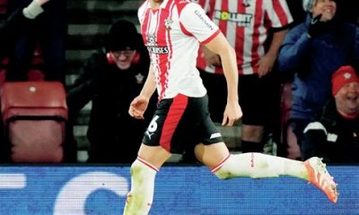 CHAMPIONSHIP MIDWEEK ROUND-UP By John Lyons JOY: Saints’ Taylor Harwood-Bellis celebrates SIZZLING Southampton continued their charge up the table under interim boss Tonda Eckert with an emphatic 3-0win against ten-man Leicester. In a match between two of the three sides relegated from the top-flight last term, it was Saints who...