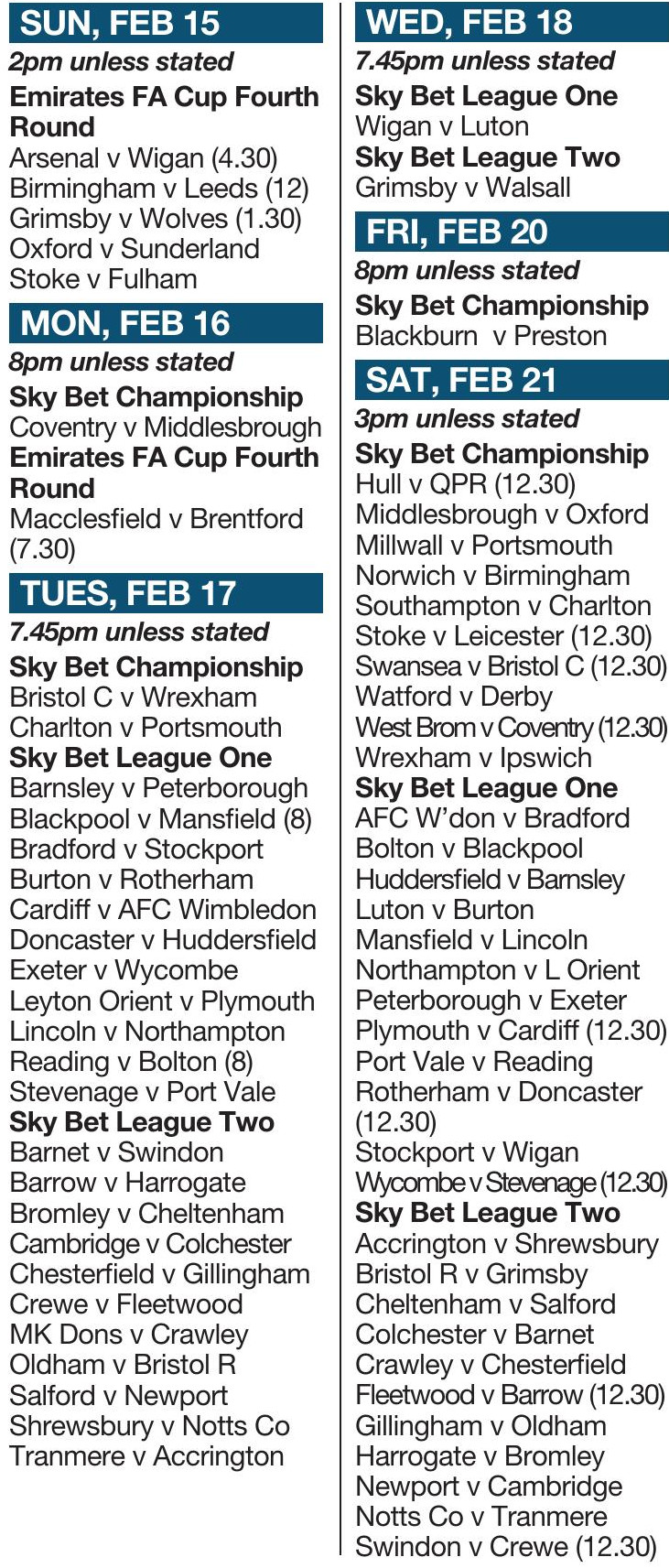 THIS WEEK’S FIXTURES