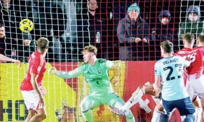 By John Lyons STARTER: Ryan Delaney nets Newport’s first BASEMENT dwellers Newport and Harrogate proved there is life in them yet by picking up precious away victories on Tuesday night. Few would have fancied Christian Fuchs’ Exiles to get anything on the road at promotion-chasing Salford, but they powered to...