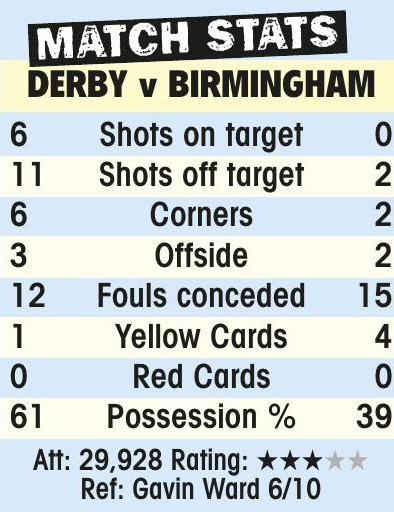 DERBY County boss John Eustace believes his team’s display against Birmingham was one of the best at home this season.