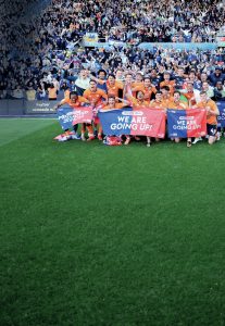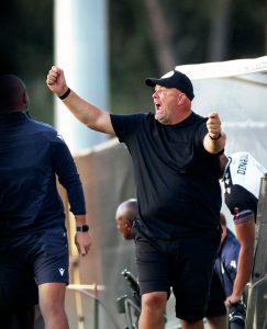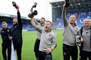 Chris Dunlavy A FRESH TAKE ON FOOTBALL SHOE-IN! Jon Brady, centre, and his Cobblers backroom staff celebrate promotion in 2023 PICTURE:...