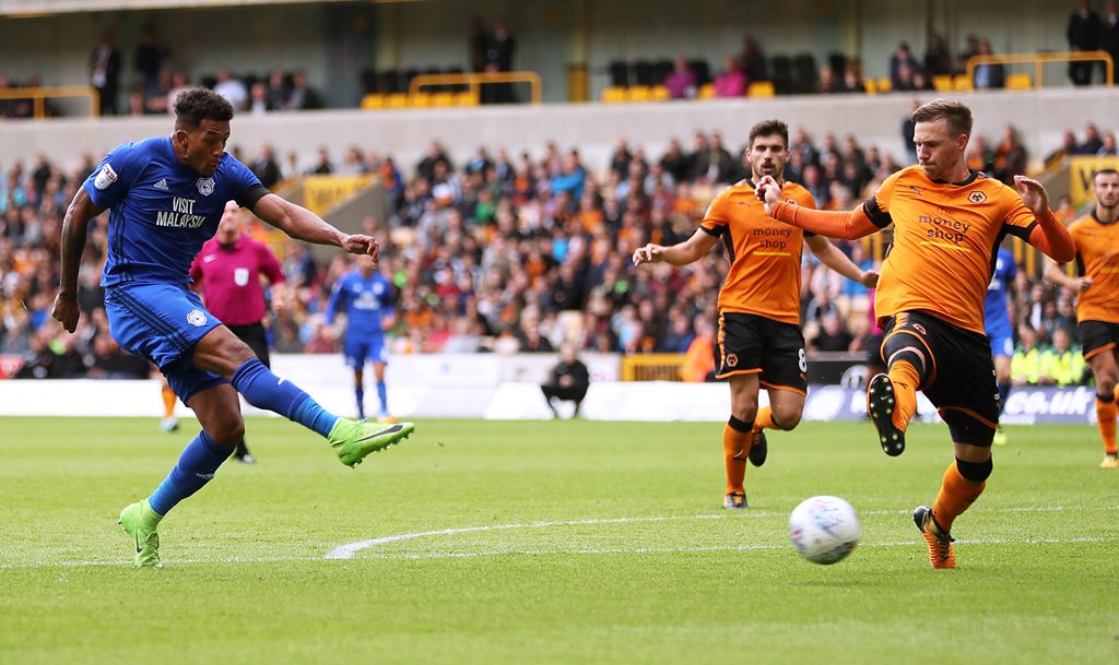 On Target: Mendez-Laing fires Cardiff ahead against Wolves to continue his impressive scoring streak (photo: Action Images via Reuters / John Clifton)
