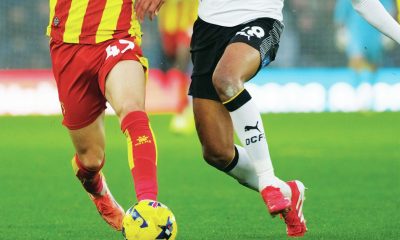 By Stephen Serpent DERBY COUNTY 2 Sanderson 36, Langas 54 WATFORD 3 Kjerrumgaard 61, Kayembe 85 (pen), 88 STAR MAN EDO KAYEMBE Watford TUSSLE: Derby’s Dion Sanderson, right, battles with Watford’s Othmane Maamma PICTURES: Alamy BELOW: Watford celebrate their comeback win, left, and Derby’s Sondre Langas enjoys his goal JAVI...
