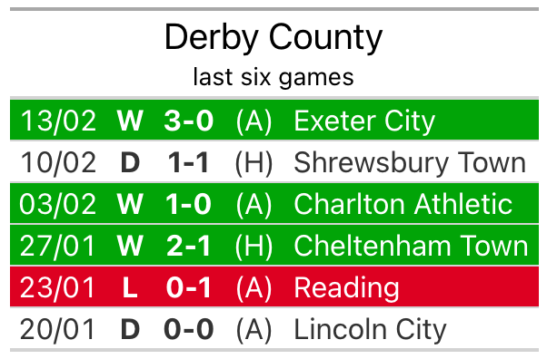 Derby are in reasonable form in League One, with three wins and two draws from their last six games.
