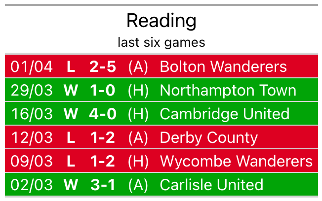 Reading’s last match was on Monday, a 5-2 loss against Bolton Wanderers, with Lewis Wing and Paul Omo Mukairu getting the goals for the Royals.