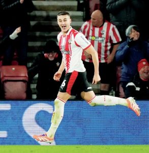 CHAMPIONSHIP MIDWEEK ROUND-UP By John Lyons JOY: Saints’ Taylor Harwood-Bellis celebrates SIZZLING Southampton continued their charge up the table under interim...