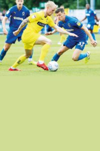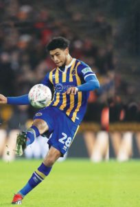 After ups and downs, midfielder feels settled… By Chris Dunlavy FOCUSED: Shrewsbury Town’s Josh Laurent and, inset, playing for Bury against...
