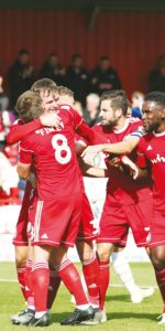 Match Ver dict HEADING NORTH! Ryan Watson is congratulated after netting Northampton first goal PICTURE: Pinnacle COTTON EYE JOE! Joe Riley...