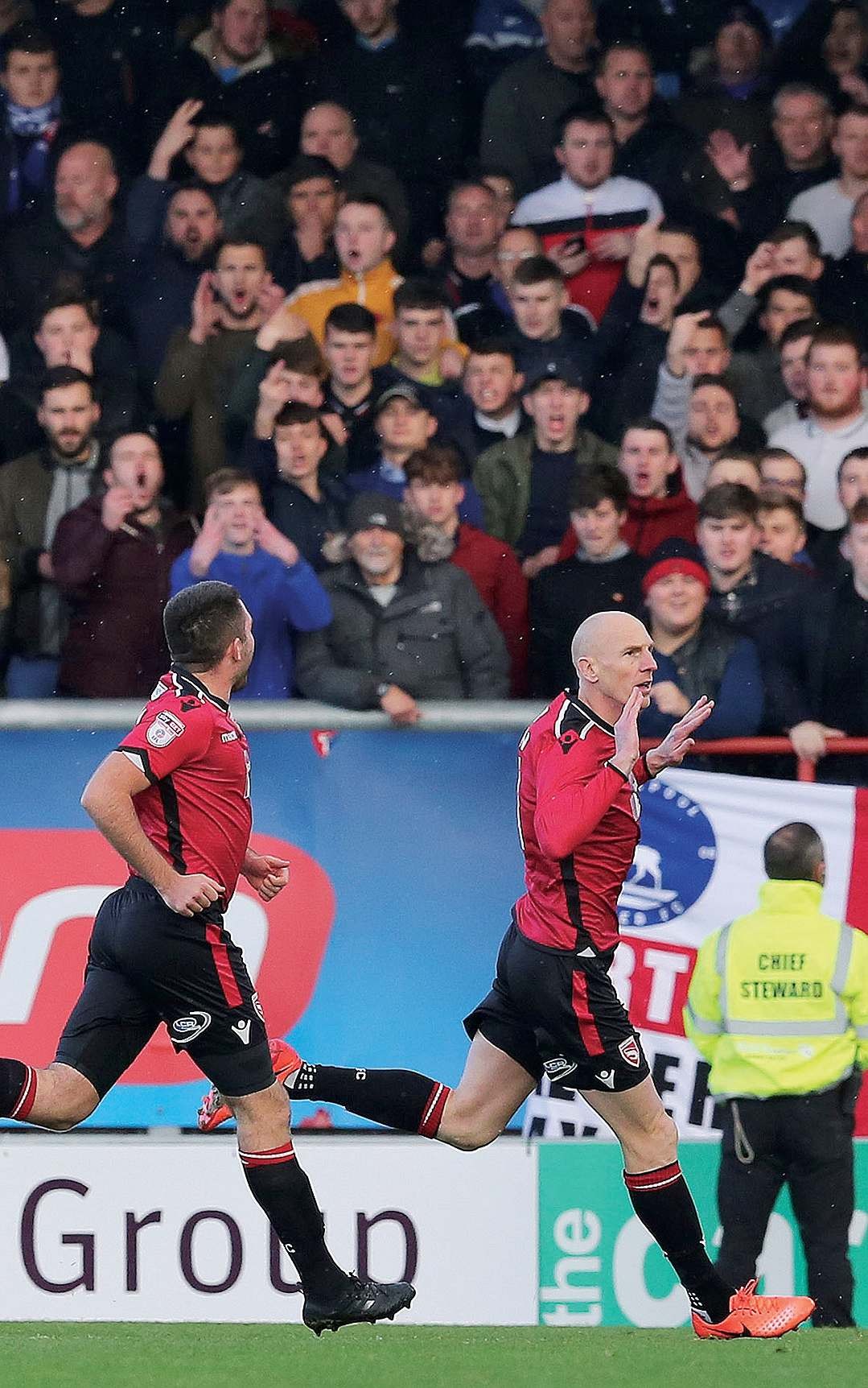 By Nick Loughlin ONE ‘ELL OF AN EFFORT: Kevin Ellison celebrates after scoring Morecambe’s first PICTURES: MI News & Sport JIM...