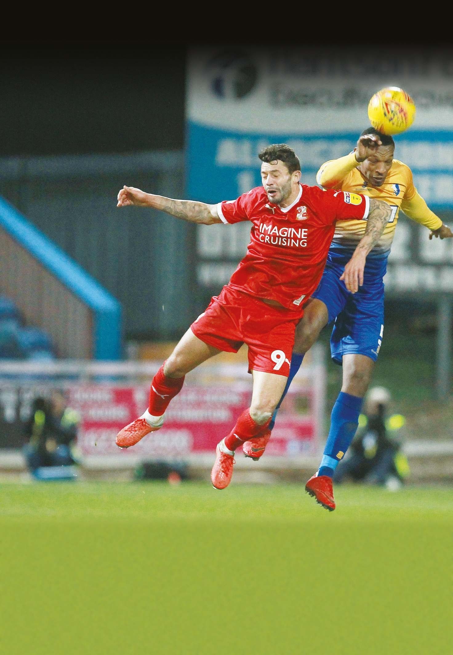 By Alex Crook ALL OVER: Swindon celebrate their second goal by Eoin Doyle Swindon’s Rob Hunt and Mohamed Maouche of Oldham...