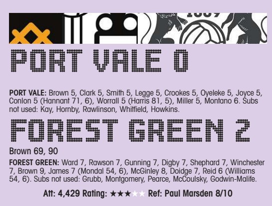 By Jack James PORT VALE 1 Robinson 2 PORT VALE: Brown 7, Smith 7, Legge 7, Brisley 8, Montano 8, Oyeleke...